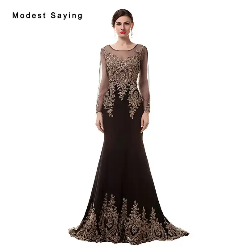 Elegant Black Mermaid Beaded Lace Long Sleeves Evening Dresses 2017 Formal Engagement Party Prom Gown Vestido Longo De Festa Vestido Longo De Festa Long Sleeve Eveninglong Sleeve Evening Dress Aliexpress